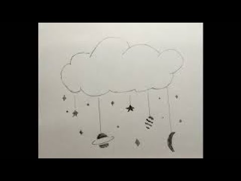 Drawing aesthetic cloud with stars and planet easy drawing pencil drawing - Planets Aesthetic Easy Space Drawings